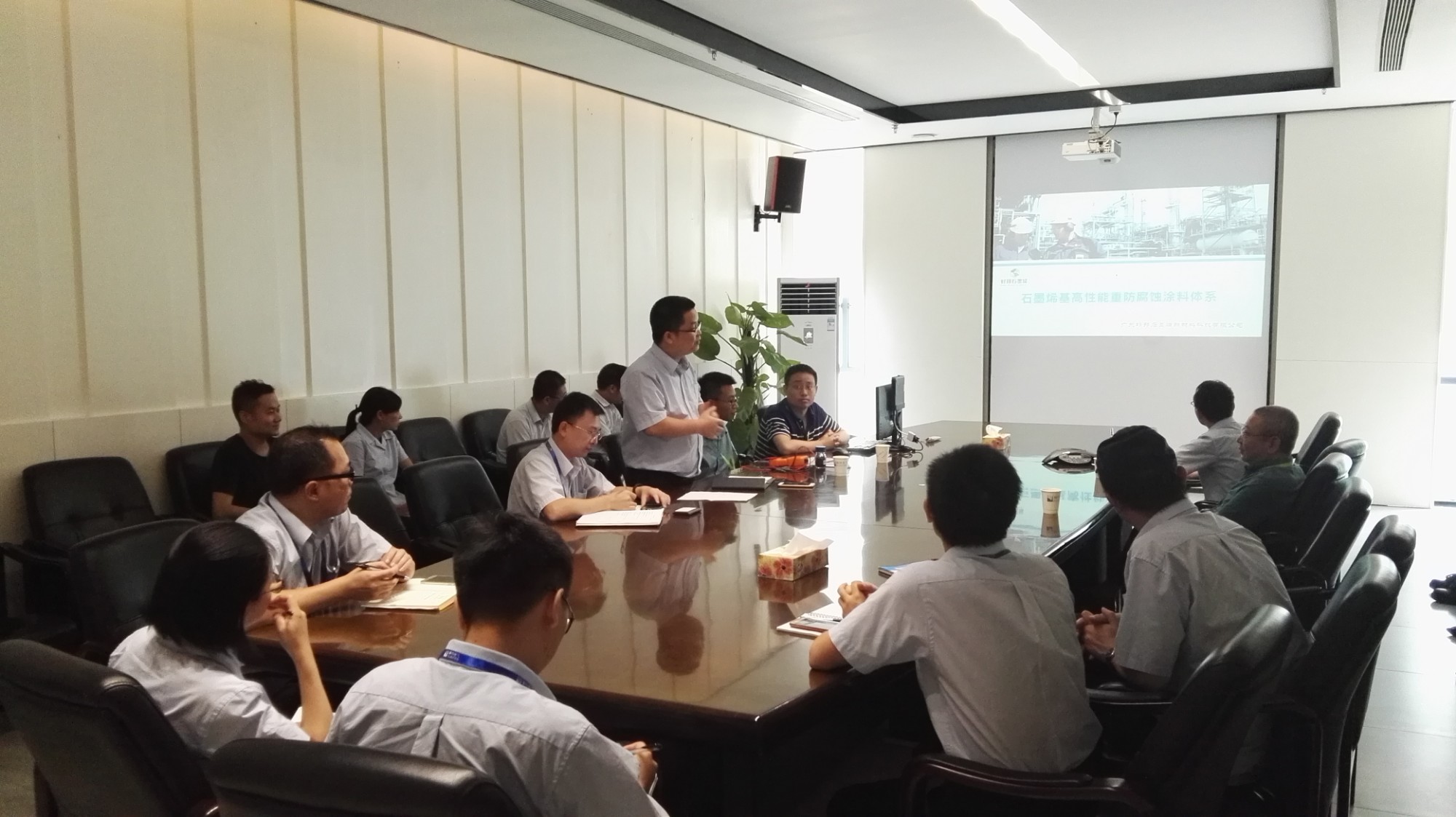 ? ? 2018年8月1日,廣東好邦石墨烯新材料科技有限公司董事長韓強、總經(jīng)理姚永健攜技術(shù)人員前往順特電氣有限公司就石墨烯防腐涂料進(jìn)行了第三次技術(shù)交流,順特公司供管部、設(shè)計部、技術(shù)部、工藝部、檢驗部等部門領(lǐng)導(dǎo)參與了交流會。會議主要討論了石墨烯涂料在電氣設(shè)備上應(yīng)用的可行性及優(yōu)越性,之前順特電氣已對好邦公司的石墨烯涂料進(jìn)行了一年多的相關(guān)試驗測試,驗證了石墨烯涂層配套性能明顯優(yōu)于傳統(tǒng)